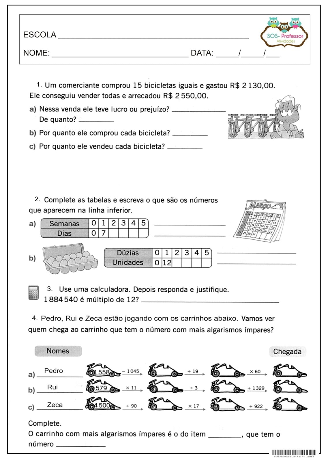 Atividade com os termos da adição e subtração