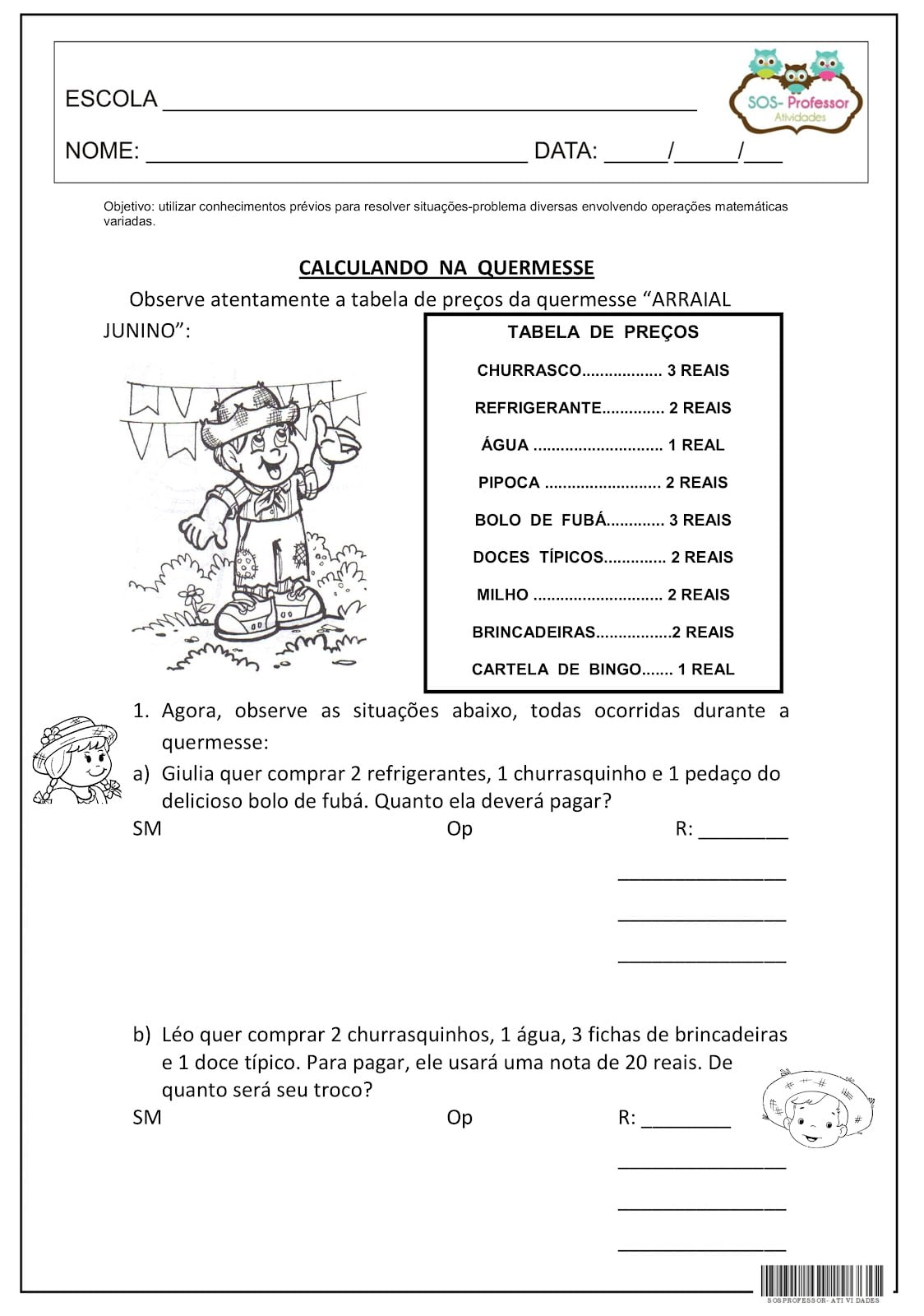 Atividade com os termos da adição e subtração